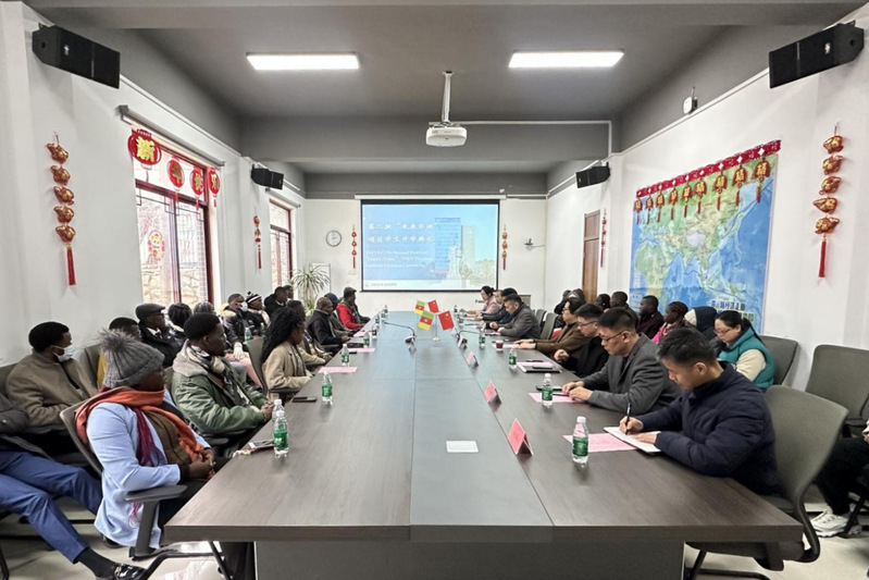 3月11日上午,我校举行第二批“未来非洲计划—中非应用型人才联合培养项目”留学生开学典礼。党委委员、副校长刘海波,非洲计算机学院教务处副处长阿博尔·安德森,喀麦隆雅温得第二大学孔子学院教师桑加·艾蒂安,我校教务处、学工处、保卫处、建筑建造学院、信电工程学院、国际交流学院等部门负责人及来自喀麦隆的27名项目留学生参加开学典礼。
