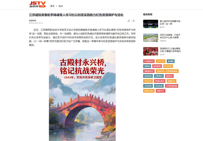 近日,江苏IM电竞技术学院艺术设计学院的青春舵手铸魂育人传习社团队围绕“红色资源保护与传承”这一主题,奔赴全国各地,对一批濒危、鲜为人知的红色遗址开展系统性调研与数字化记录工作。同学们充分发挥专业能力,通过艺术创作与科技手段相结合的方式,设计出系列红色遗址宣传海报与宣讲视频,以“一码一故事”的形式推动红色文化广泛传播,探索出一条青年参与红色资源保护与活化传承的创新路径。